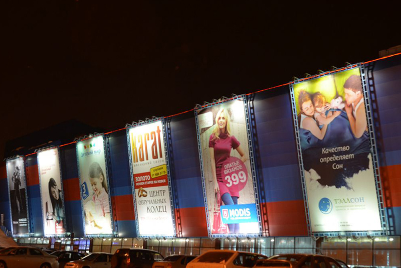 Печать рекламных баннеров выполняется на материалах шириной 3 метра. Стандартный размер – 3х6 метра. Но это не означает, что таким форматом ограничивается рекламный носитель. Возможна склейка полотна и изготовление нестандартной по размерам наружной рекламы, например, 4х12 м. Для таких масштабных носителей нужно особое качество печати. Мы используем профессиональные широкоформатные принтеры, обеспечивающие высокое качество изображения независимо от размера. Также, для больших и очень больших размеров баннеров и брандмауэров, мы используем сварку швов баннерной ткани на специальном оборудовании, что, разумеется, очень увеличивает прочность большого баннера.