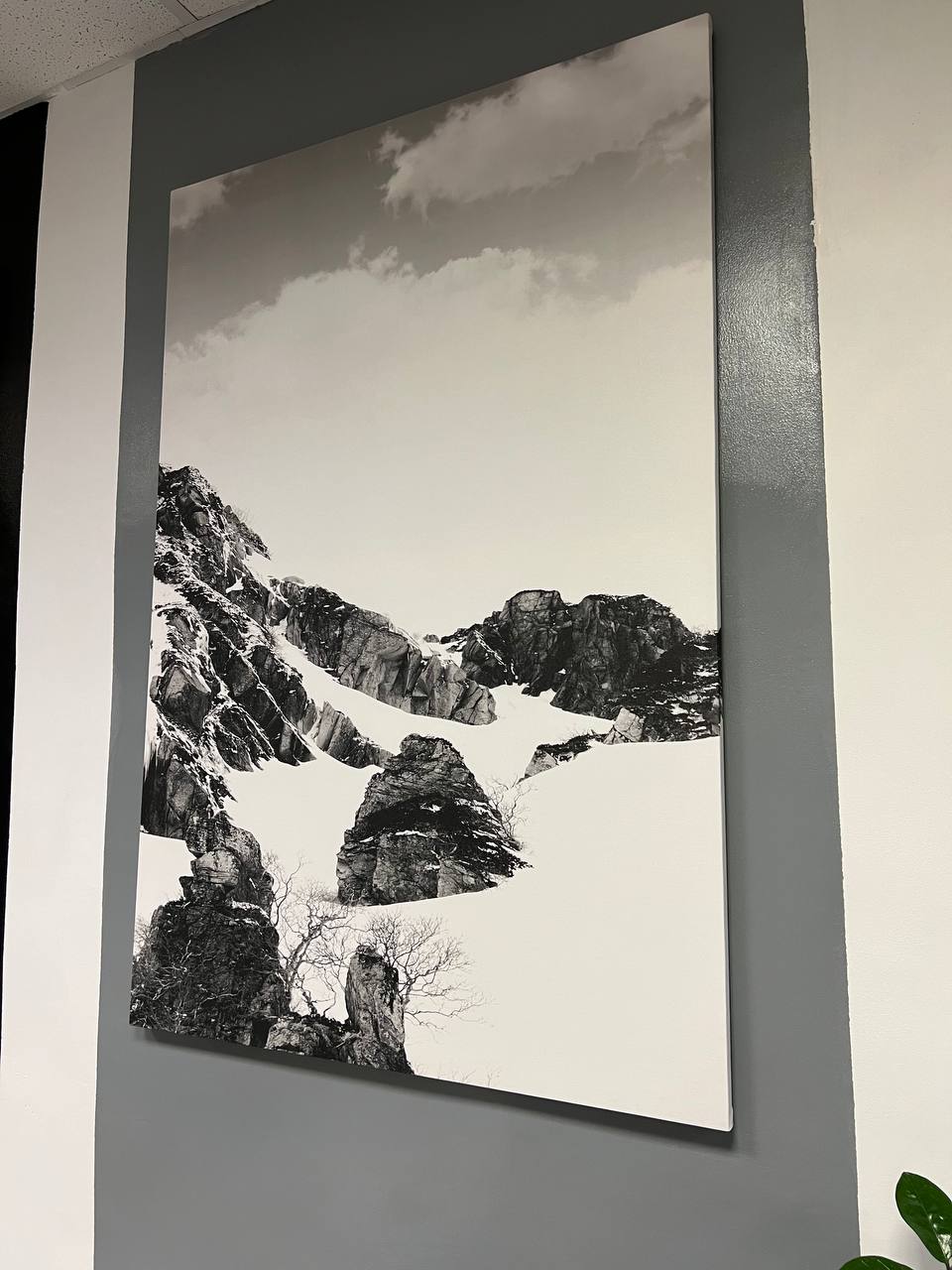 После распечатки фото на ткани она обрезается по размерам и натягивается на подрамник. Причем сделать это нужно аккуратно, не перетягивая полотно, чтобы рисунок не деформировался, не провисал, а выглядел безупречно. Для этого у нас есть специальное оборудование и некоторые “ноу-хау”. Также, мы используем г-образную планку для натяжки, что исключает видимость переходов на краях холста.
