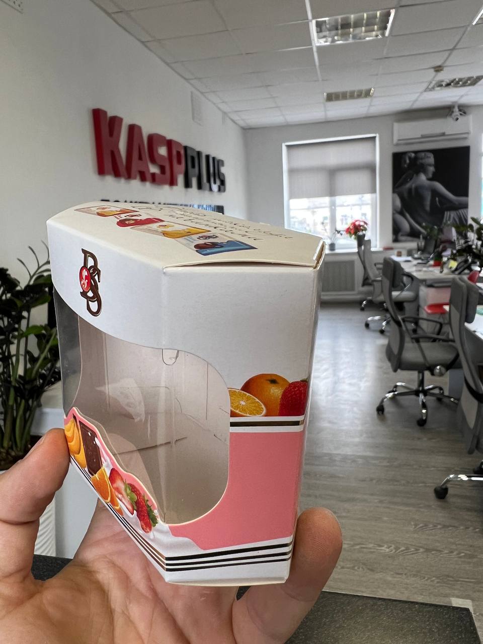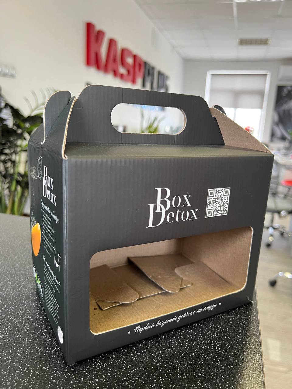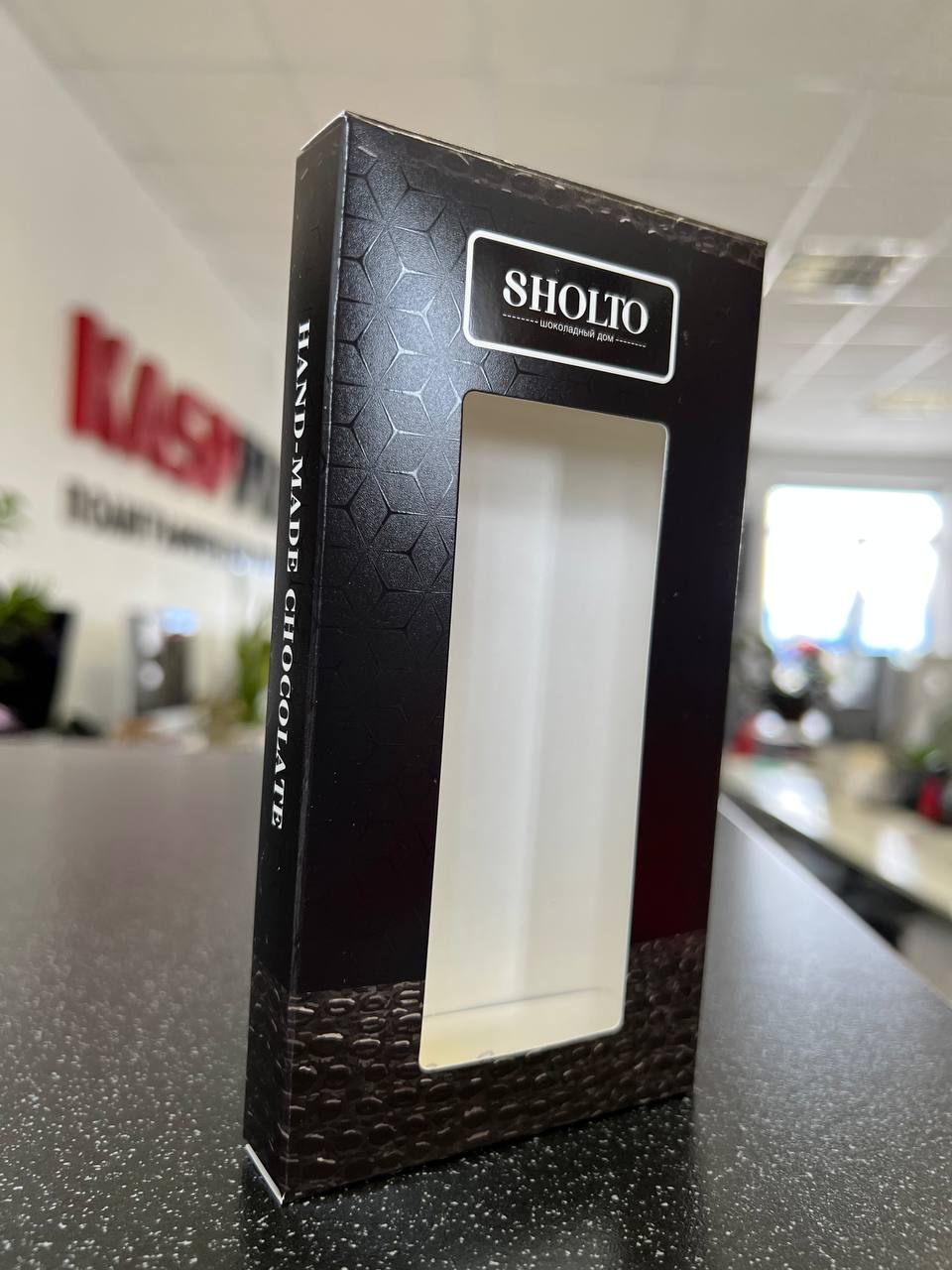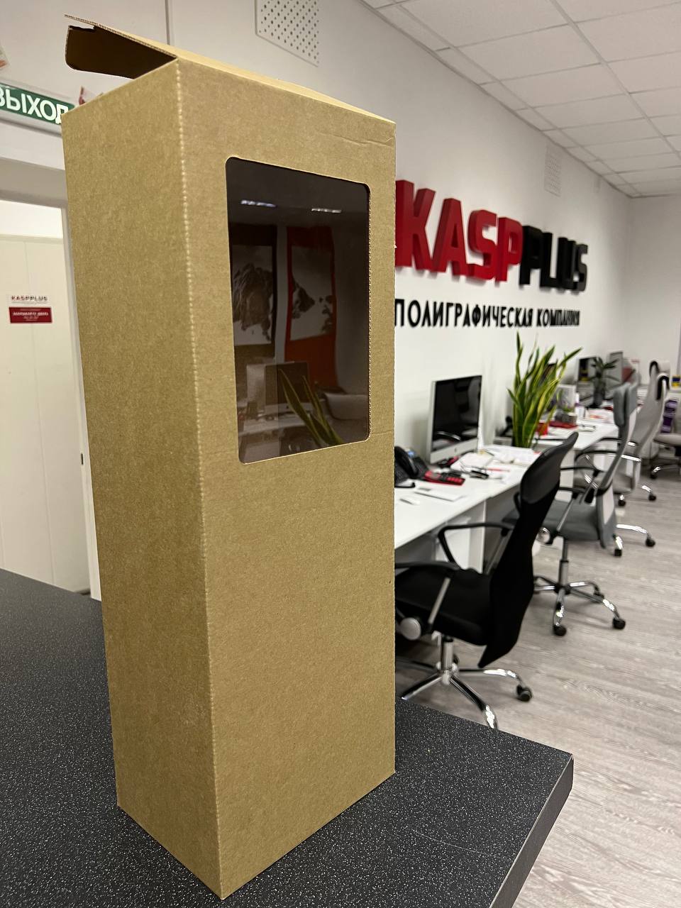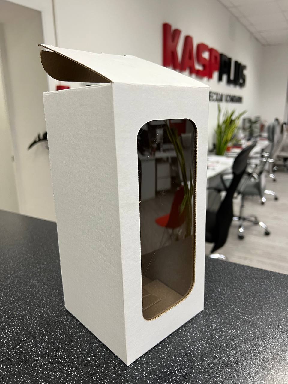 Посмотрите видео с коробочкой с окошком, полноцветной печатью и ламинацией.