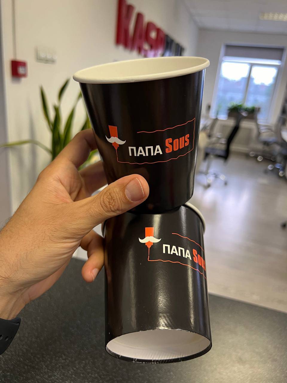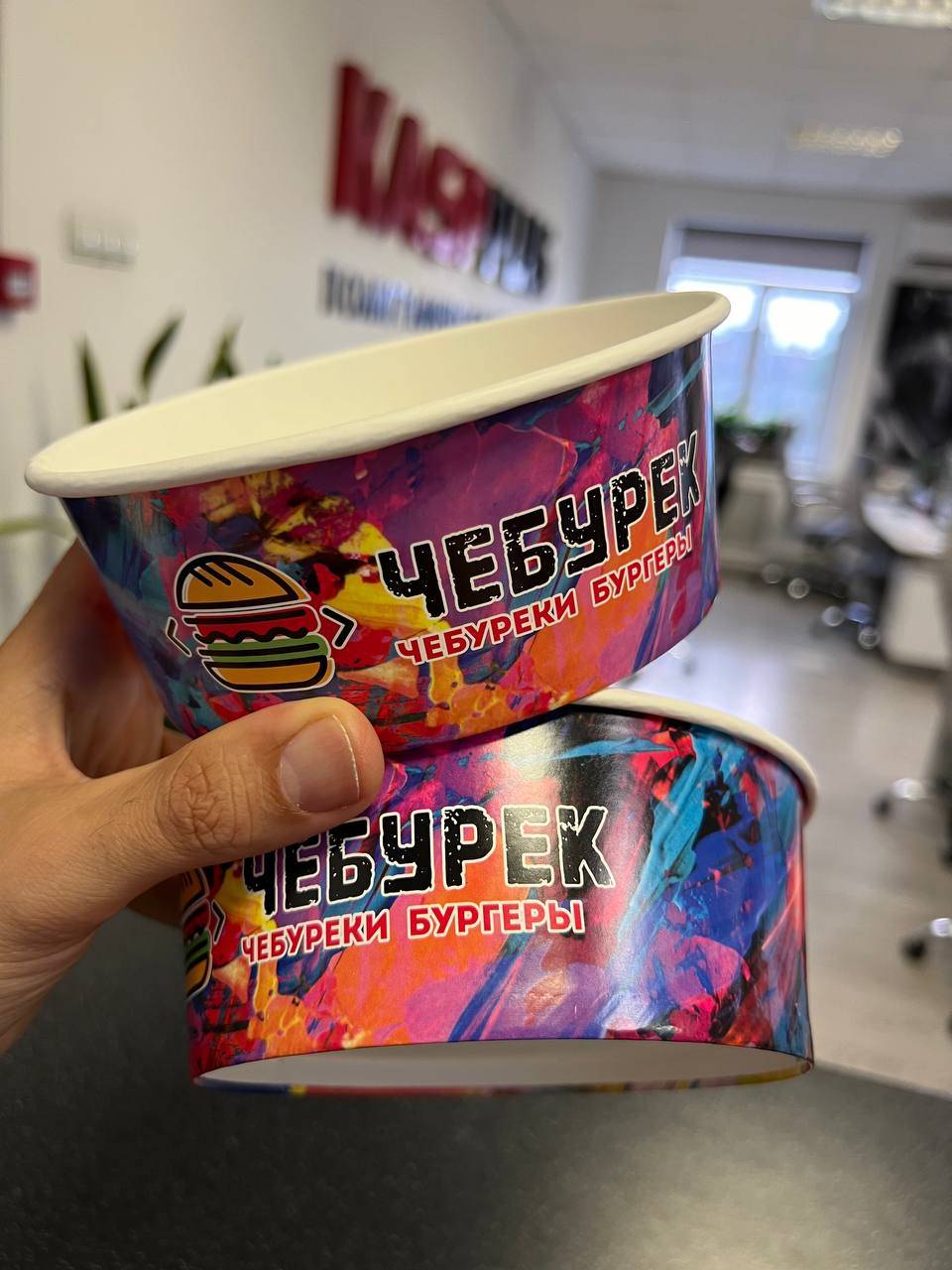 Еще мы делаем берндированные коробки для фаст-фуда, круглые коробки под торты и пироги, брендированный пергамент, всевозможные варианты пакетов, бумажные стаканчики для напитков.