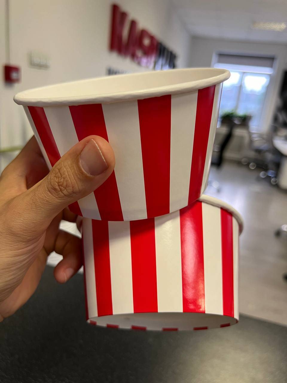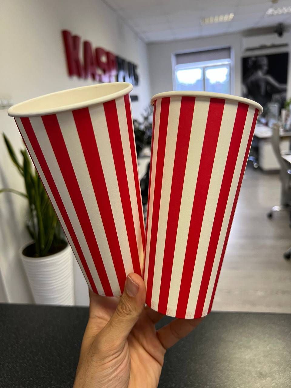 — Стаканы для попкорна и мороженого: различные размеры и дизайны.