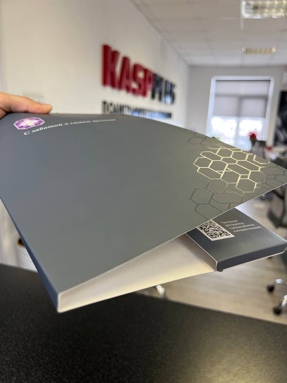 Ламинация, особенно матовая и софт-тач, идеально дополняет выборочную лакировку. Матовая ламинация добавляет глубину и матовую текстуру, что делает ваш дизайн более элегантным. Софт-тач ламинация придает дополнительную тактильную привлекательность, делая поверхность приятной на ощупь. Эта комбинация отлично подходит для каталогов, брошюр и корпоративных материалов.